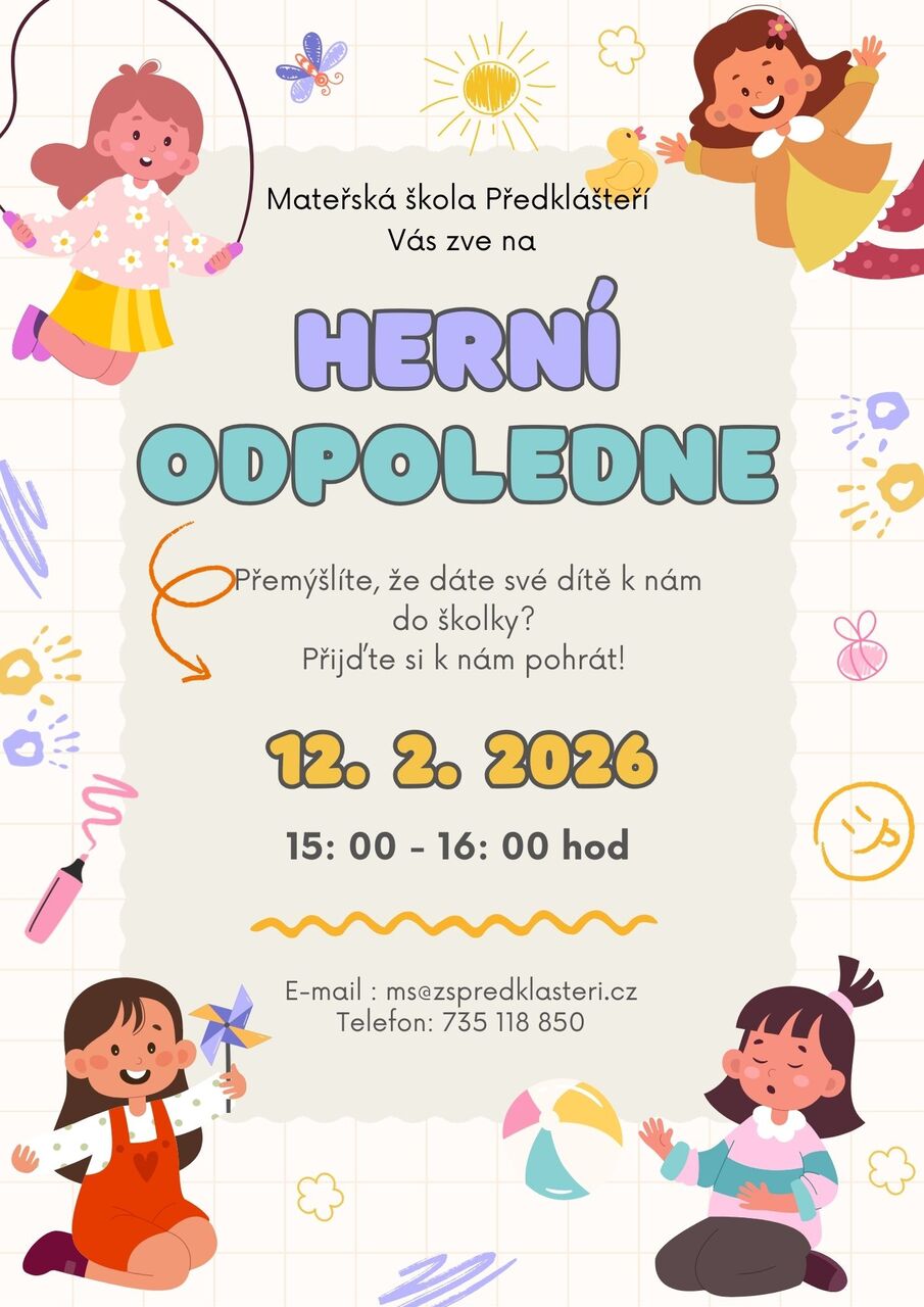 V pondělí 8. 12. 2025 dopoledne půjdme s dětmi na Výstavu betlémů na OÚ Předklášteří.Nedávejte dětem, prosím, kombinézy.