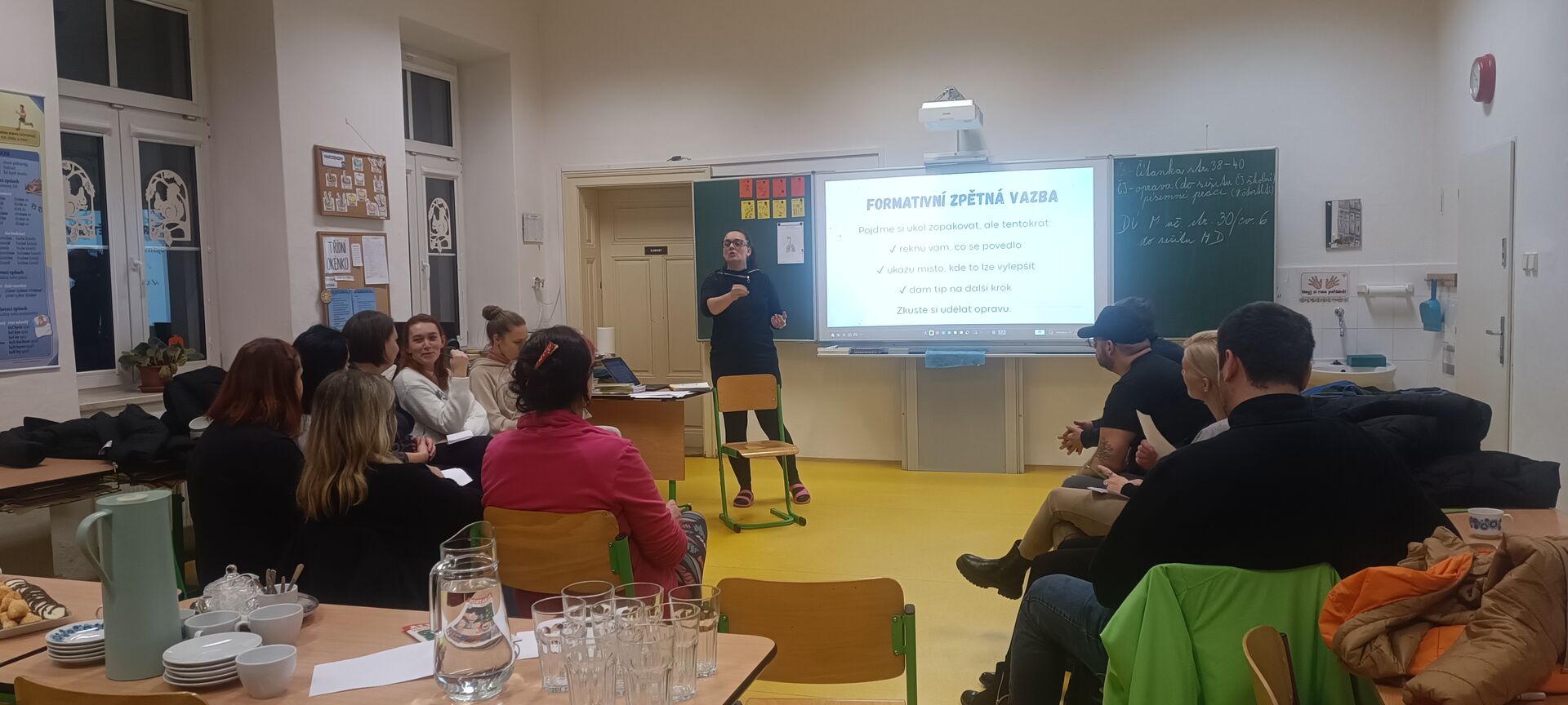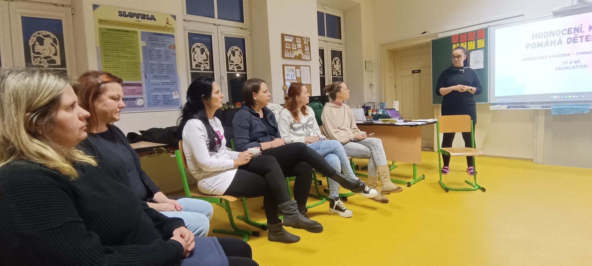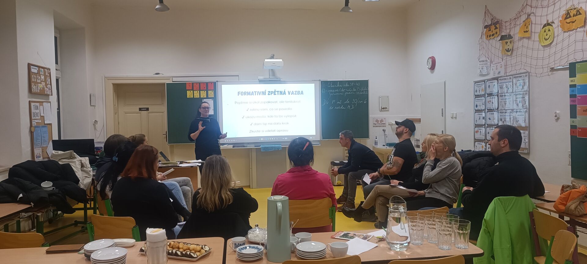 V pondělí 24.11. jsme v 16 30 hod. přivítali 14 zájemců z řad rodičů, kteří se chtěli dozvědět více o formativnim hodnocení, jež má poskytovat zpětnou vazbu v příběhu učení žákům tak, aby dosahovali co nejlepších výsledků. Poděkovat chci paní učitelce Veronice Žandové, která setkani vedla, ale i rodičům, kteří přišli, kladli dotazy a podpořili nás. Pokud by byl zájem i dalších rodičů, kterým se třeba nehodil termín této akce, neváhejte a ozvěte se nám.