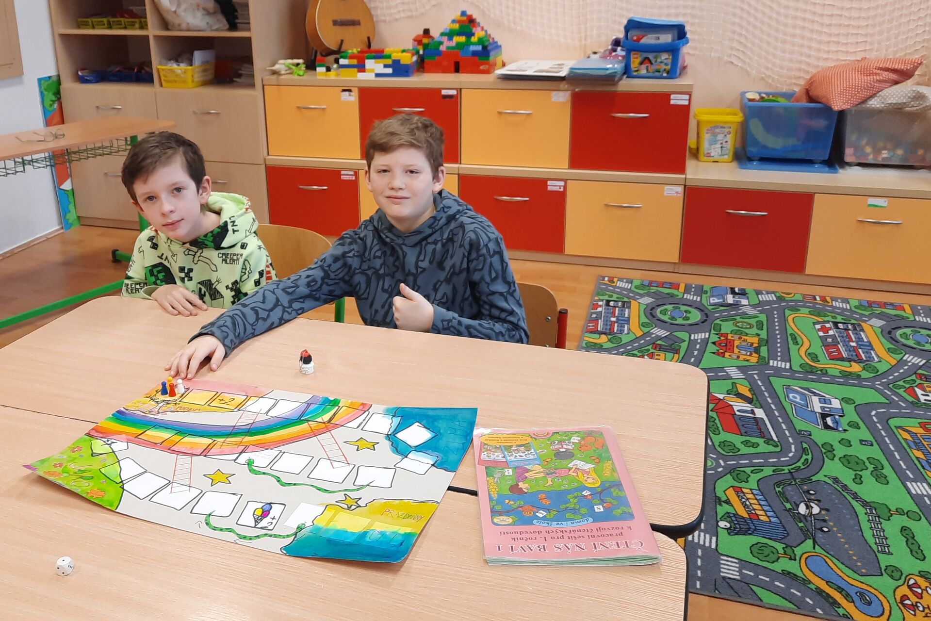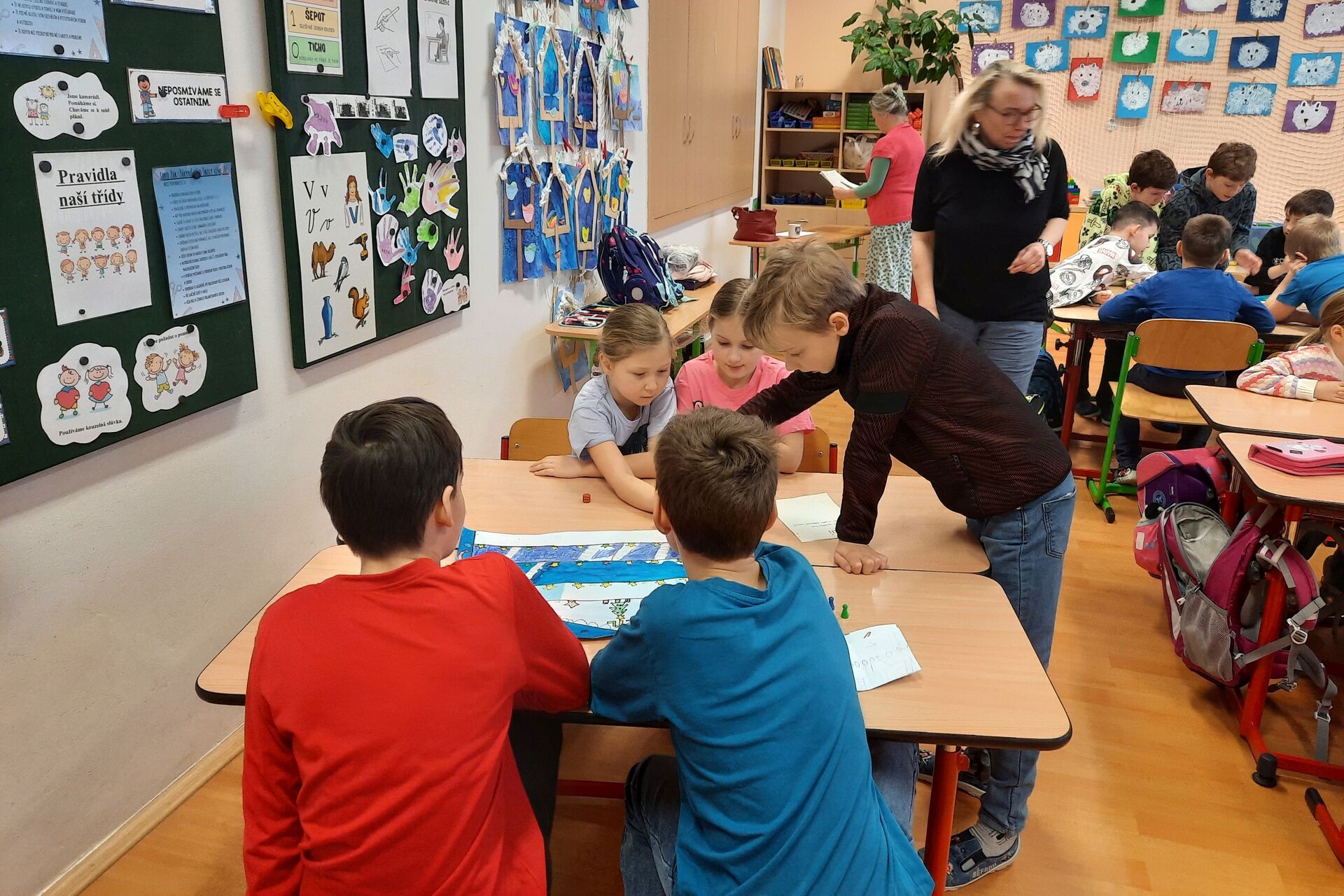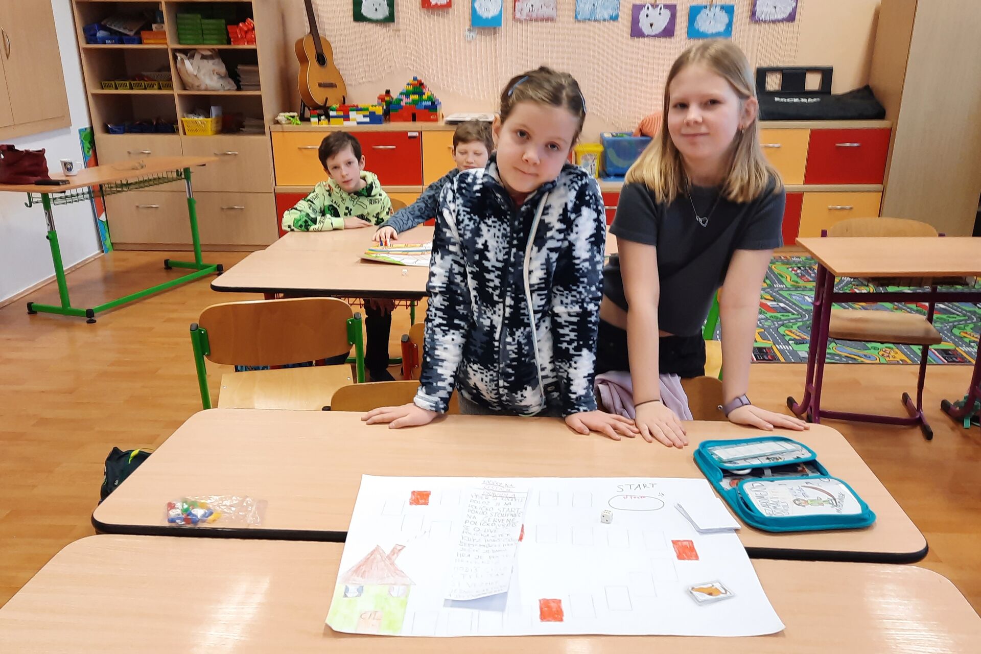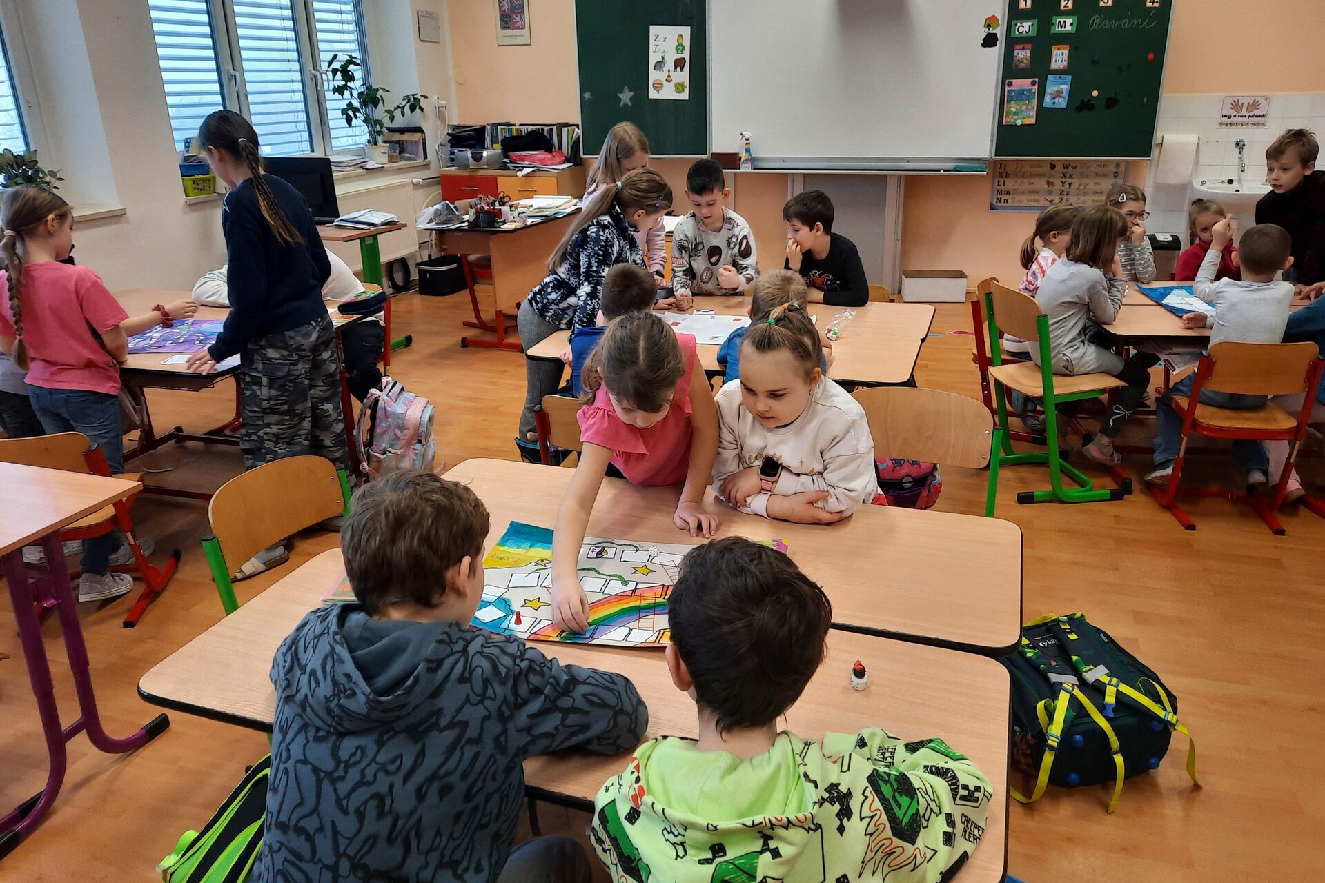 Páťáci a čtvrťáci připravili v barevných hodinách deskové hry pro prvňáčky