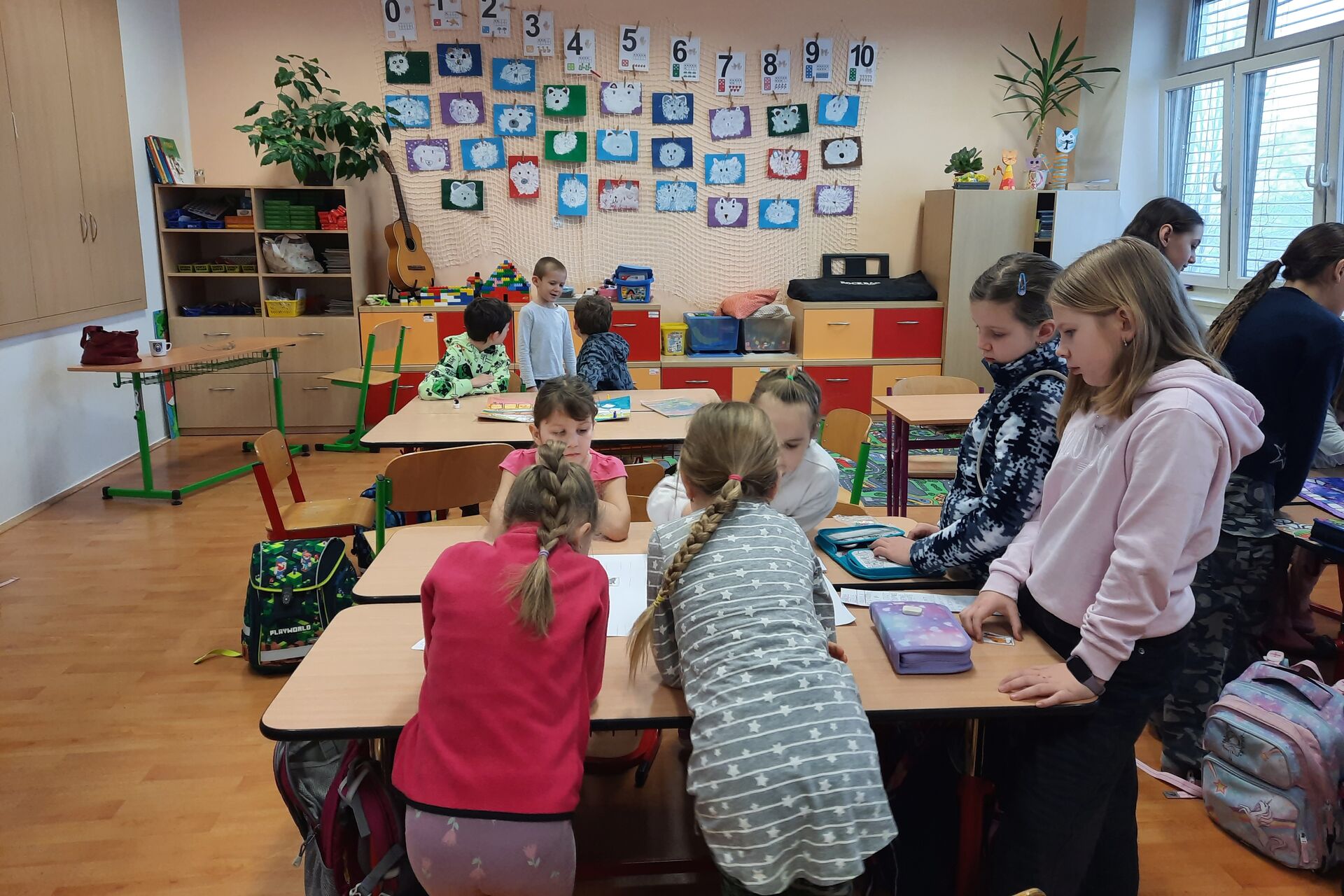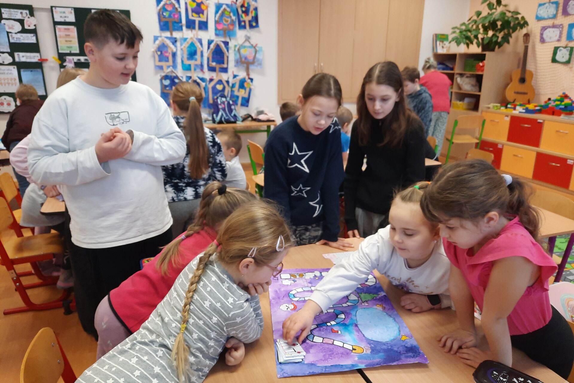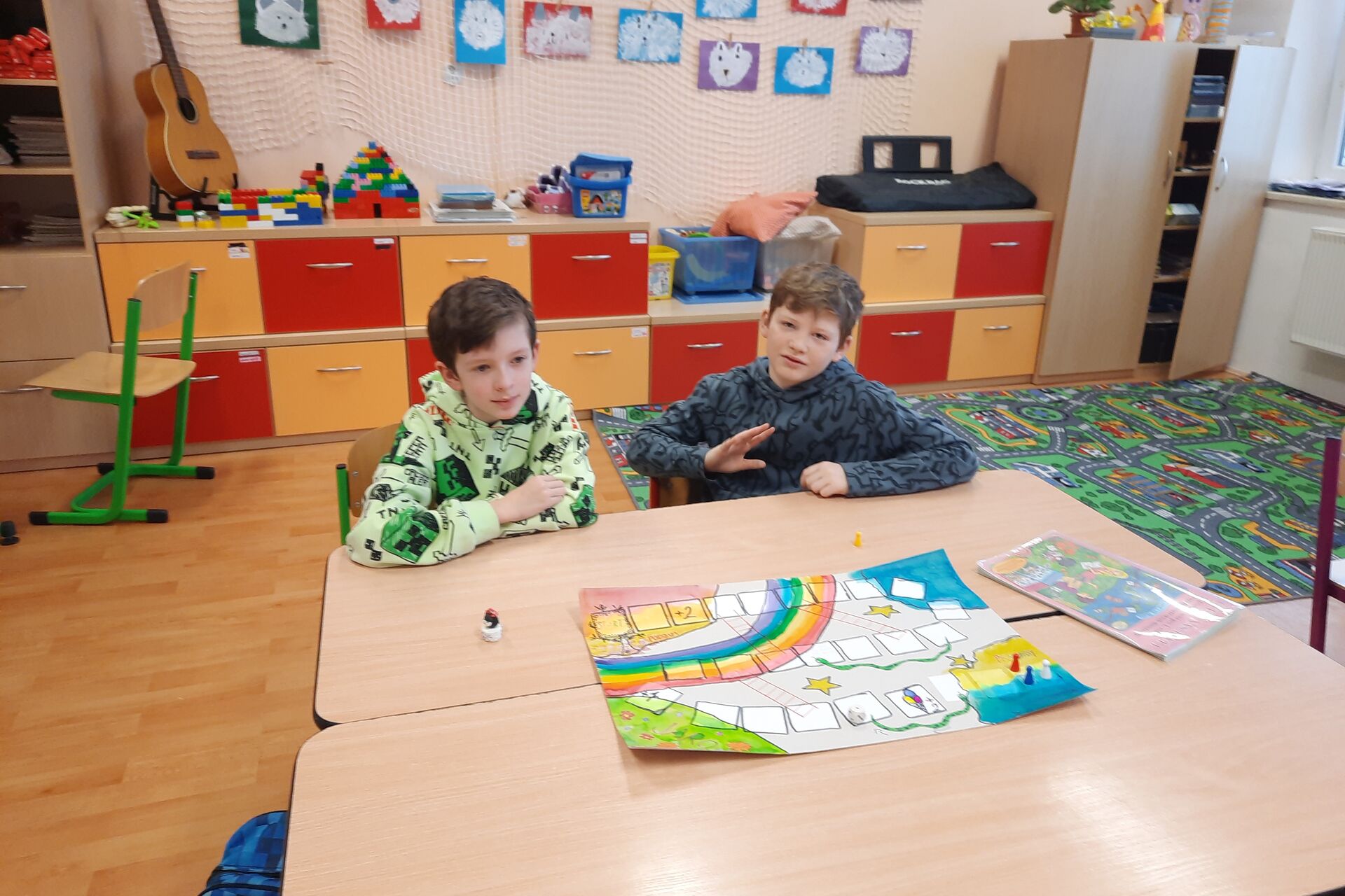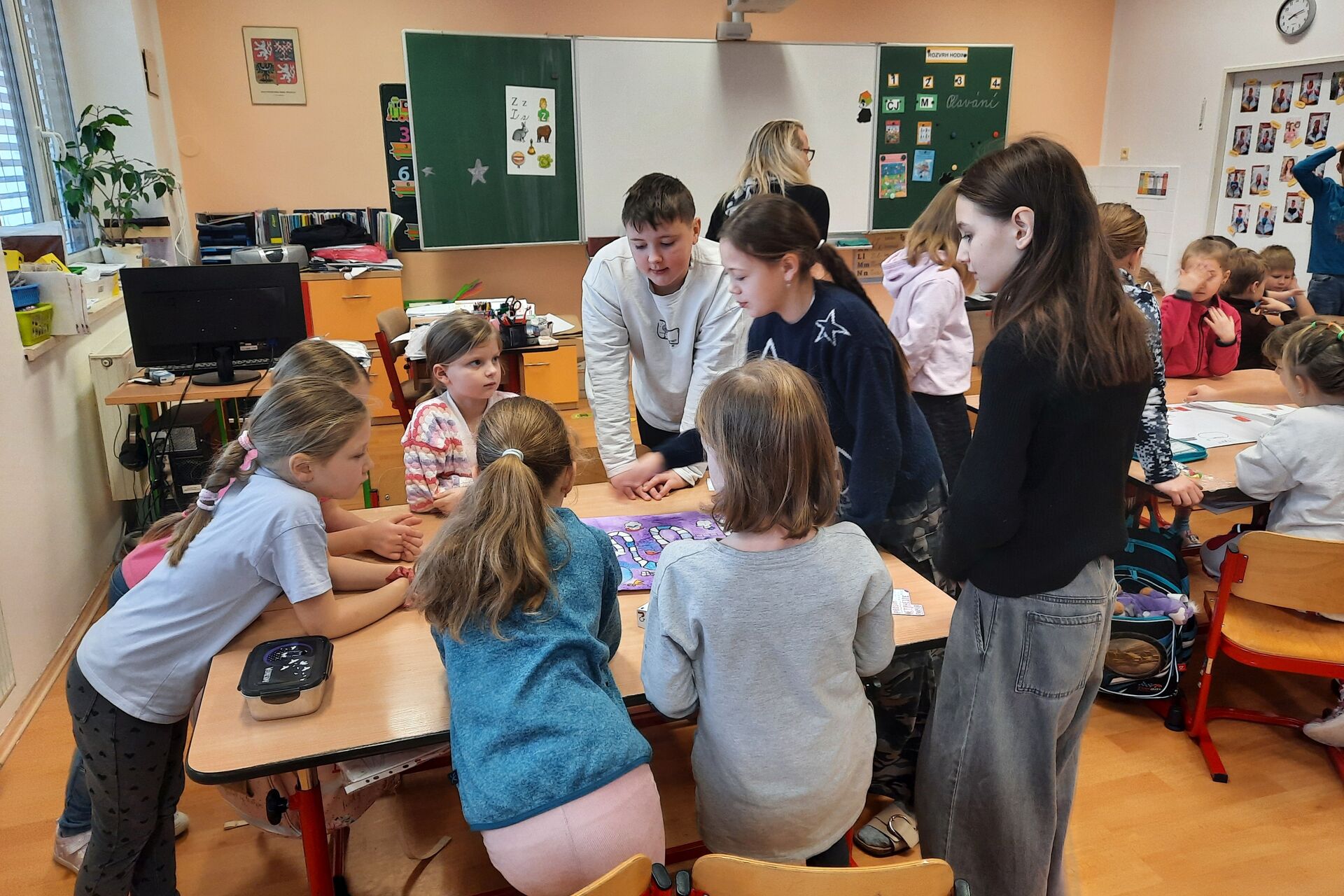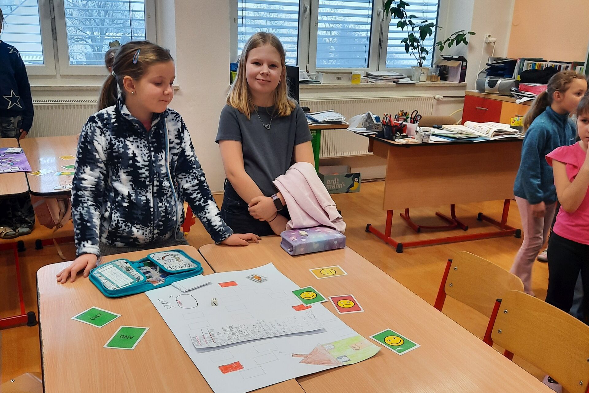 Páťáci a čtvrťáci připravili v barevných hodinách deskové hry pro prvňáčky