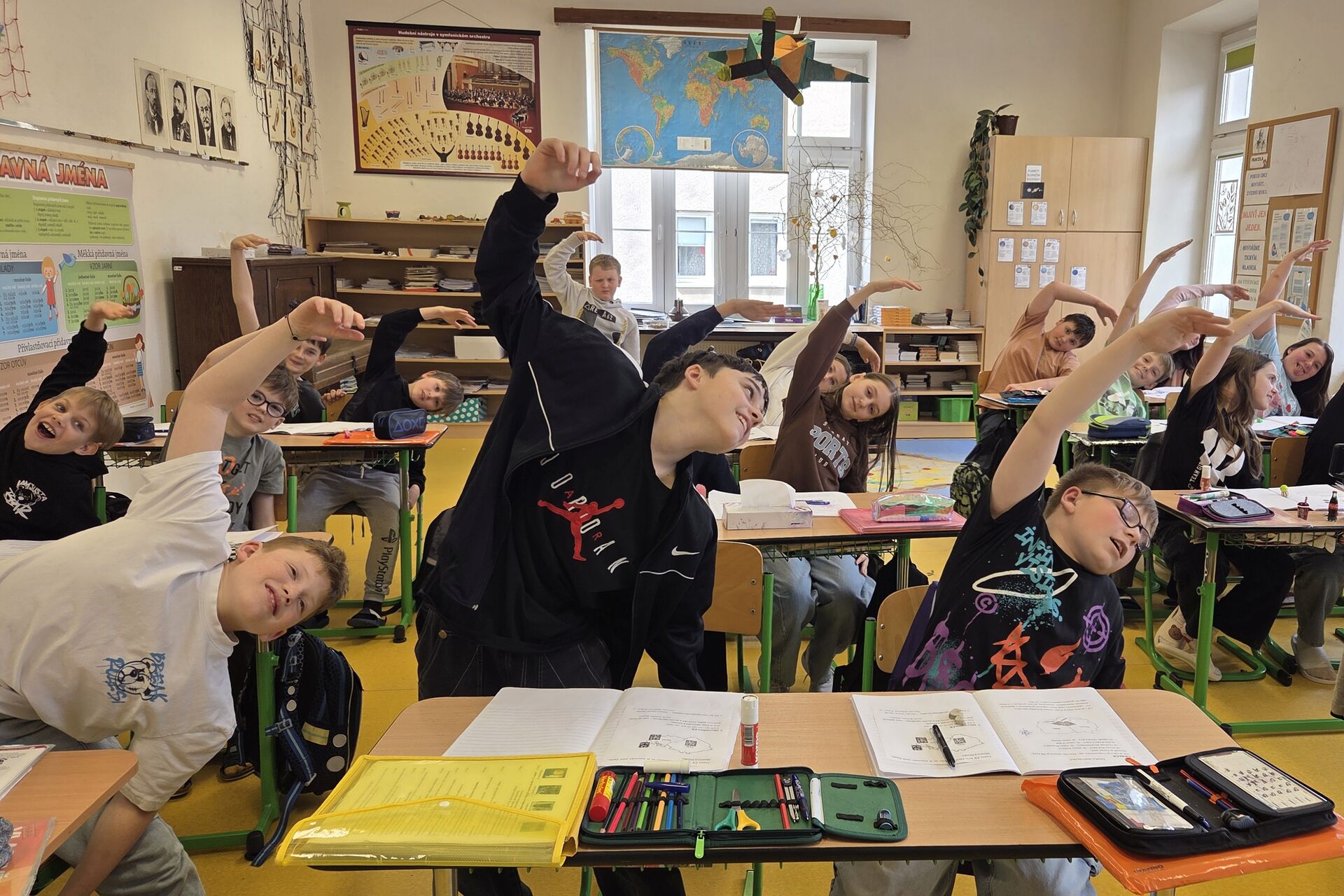 Když cítíme, že pozornost opadá, nečekáme například v 5. třídě na zvonění. Do výuky i odpoledního klidu vkládáme krátké pohybové mikro-přestávky.Soutěž v deskových hrách